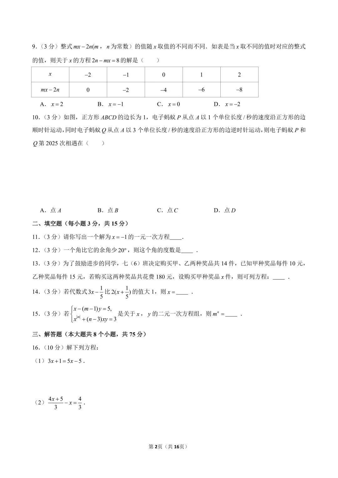 26年春华师版数学七年级初一下册第一次月考测试卷【附答案解析】丨高清可打印(330)