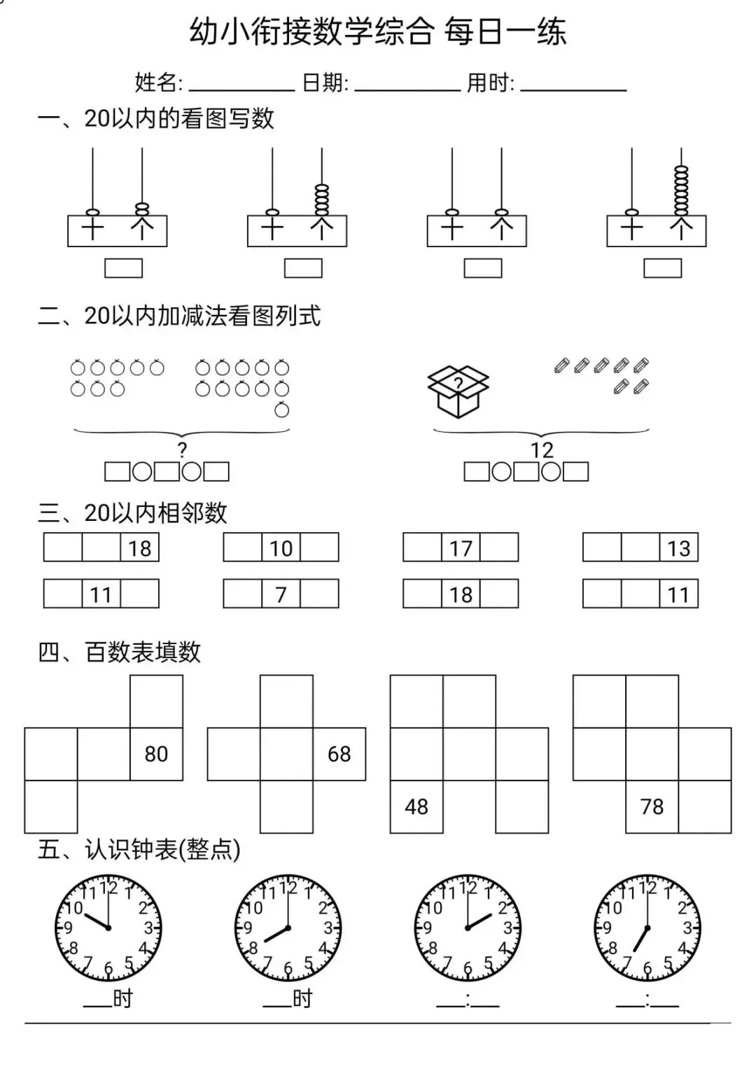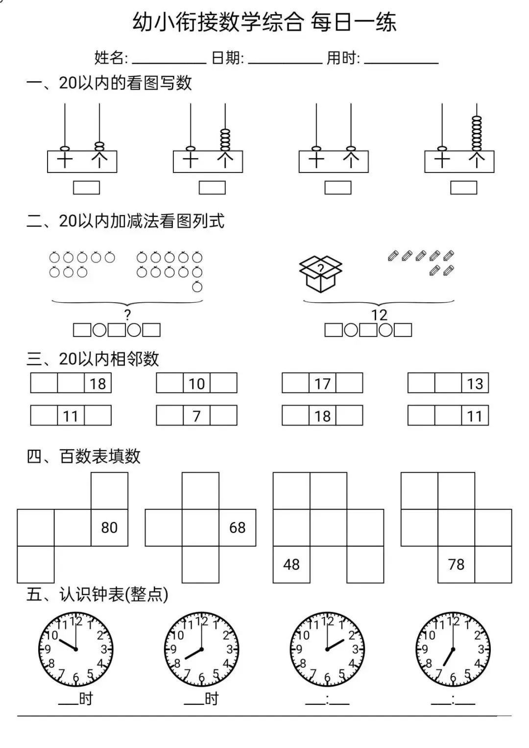 幼小衔接数学每日一练(16套),附网盘下载链接,可免费下载打印完整电子版.