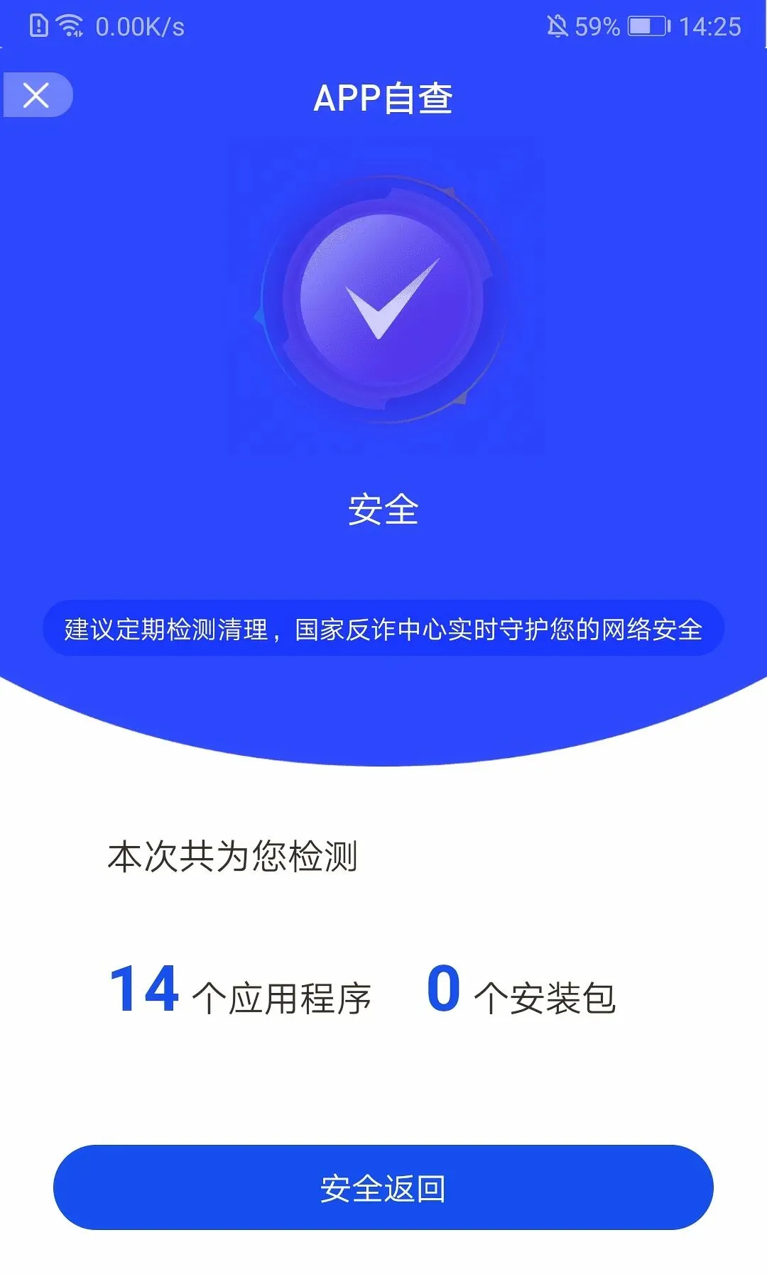 您可以在“国家反诈中心”app里快速检测全机已安装应用和未安装应用安装包,精准识别手机内可疑诈骗应用。