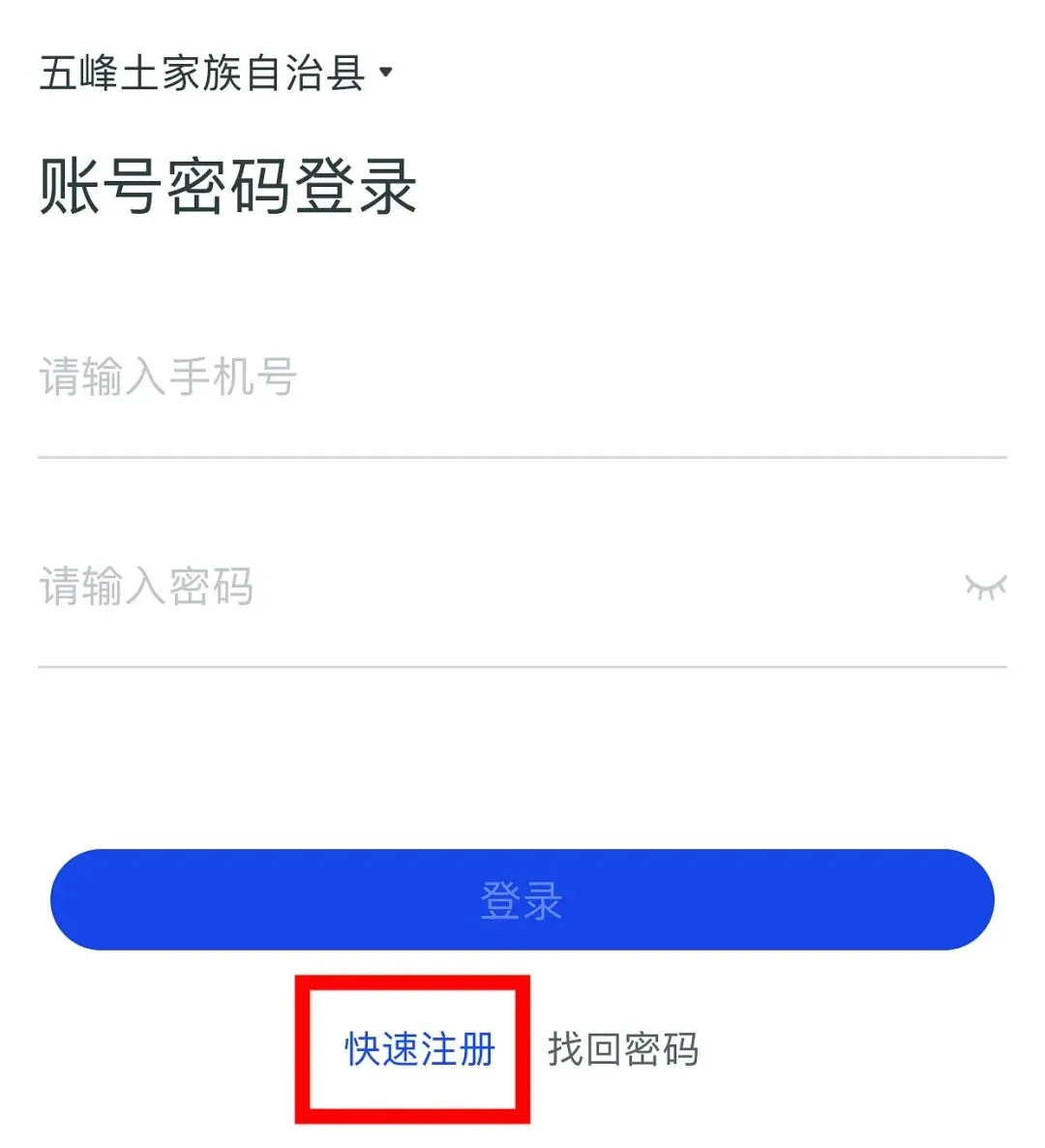 三、点击“快速注册”→输入手机号→获取验证码→点击“下一步”,完善账号并保存。