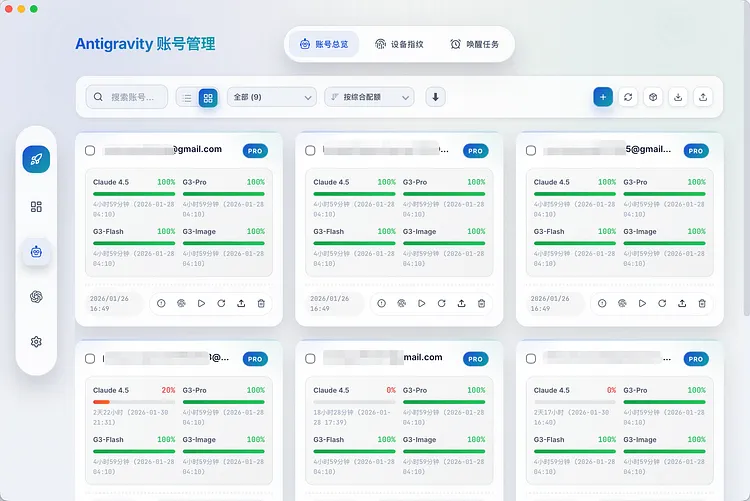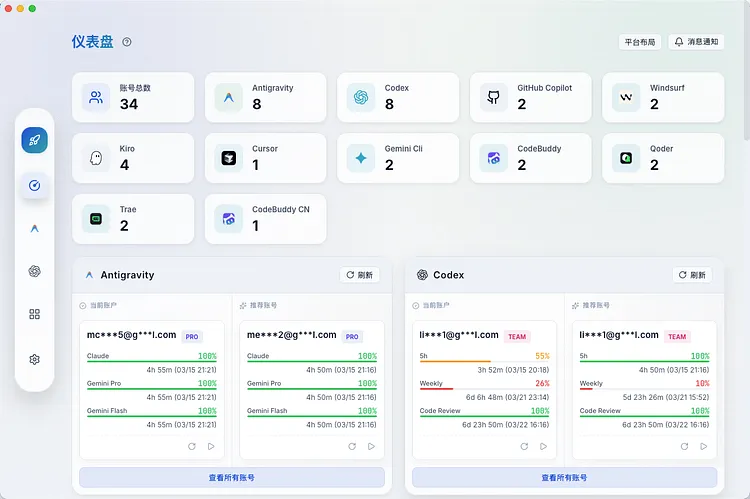 • 📊 可视化仪表盘:直观展示配额消耗与账号状态 -