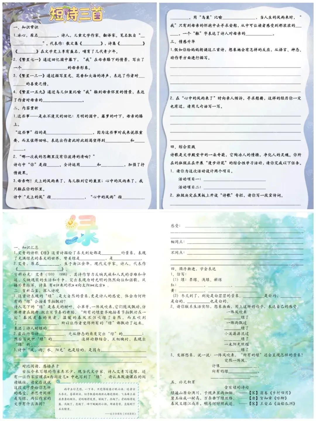 【创意作业】四下语文第三单元创意作业电子版下载地址