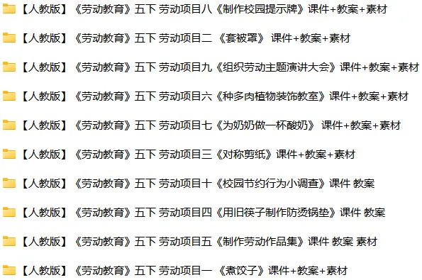 【电子版】2026人教版 小学五年级劳动教育实践活动手册 教案+课件+素材(全套下载)可编辑打印