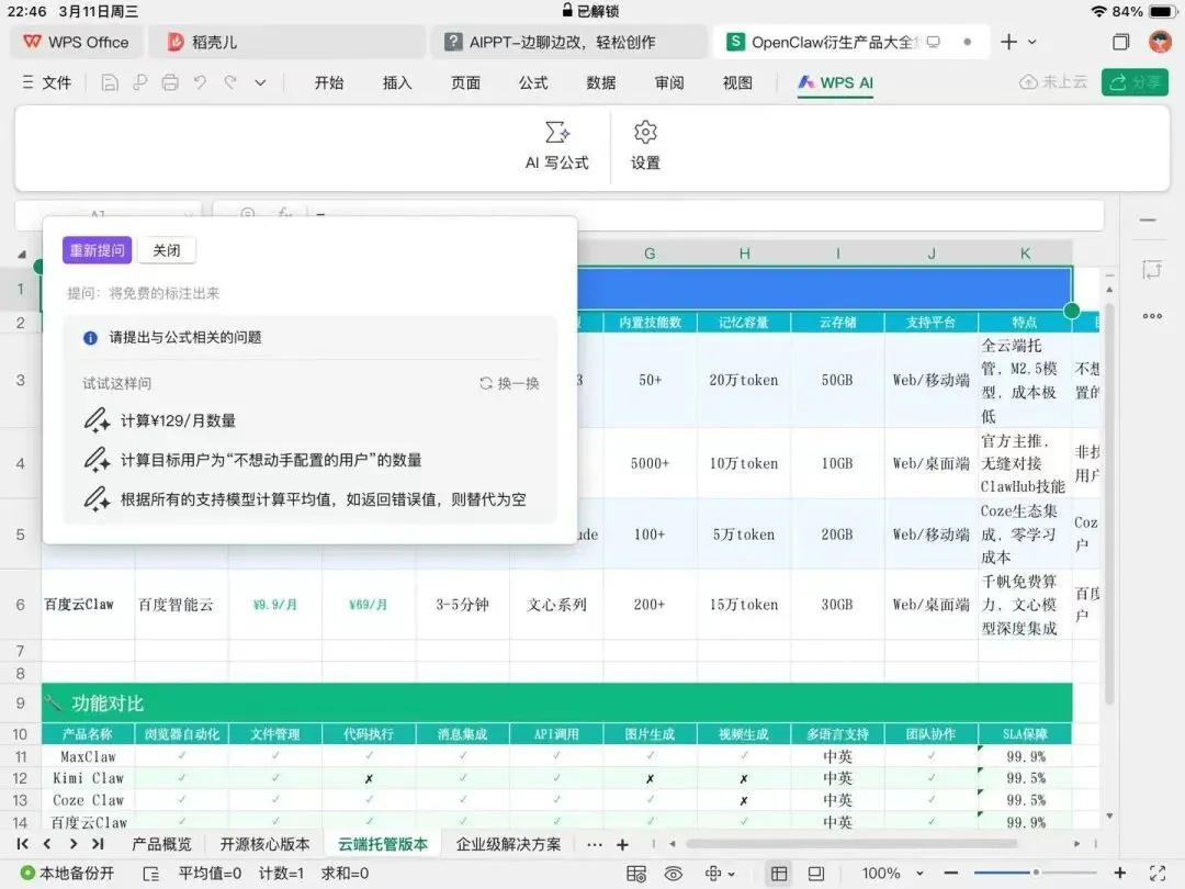 WPS 365接入了Open Claw