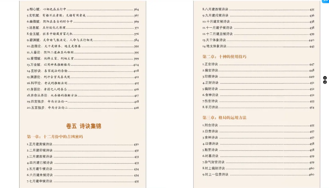 书籍简介:该书以徐子平创立的四柱法为核心,将唐朝李虚中的三柱法扩展为年、月、日、时辰四柱体系,确立了以生日天干为核心的命理分析框架,成为四柱命理学的奠基性典籍。