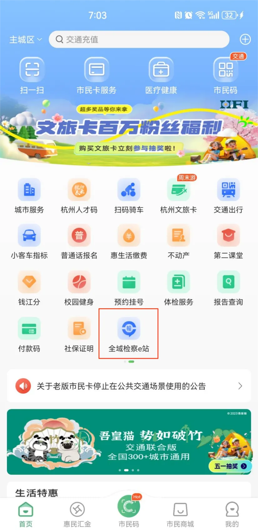 “全域检察e站”入驻杭州市民卡APP啦!