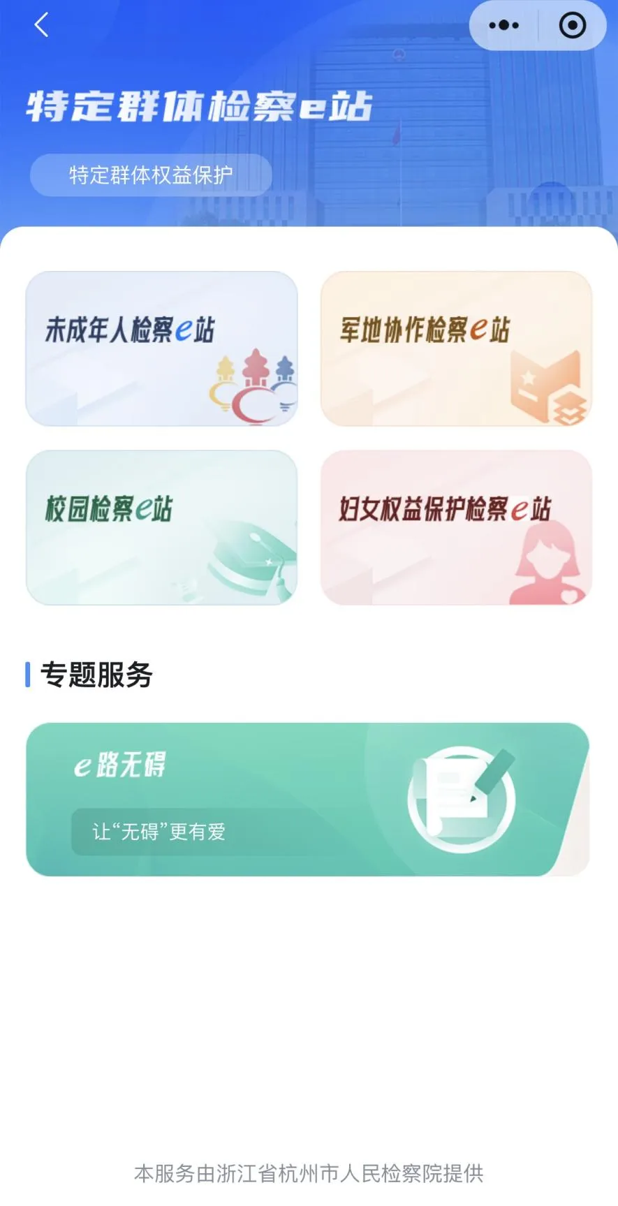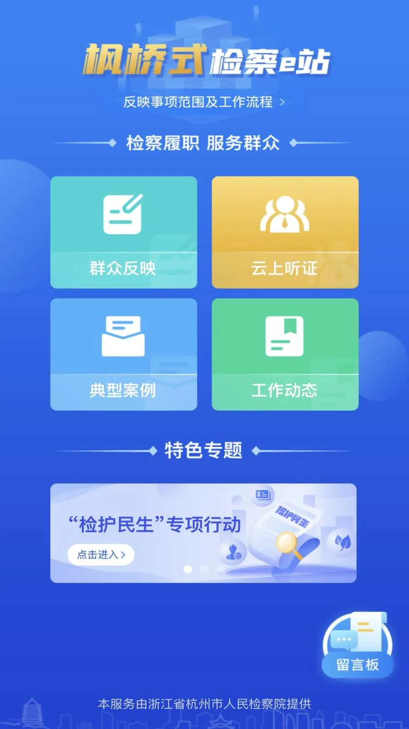 打开杭州市民卡APP,首页便能看到“全域检察e站”应用。