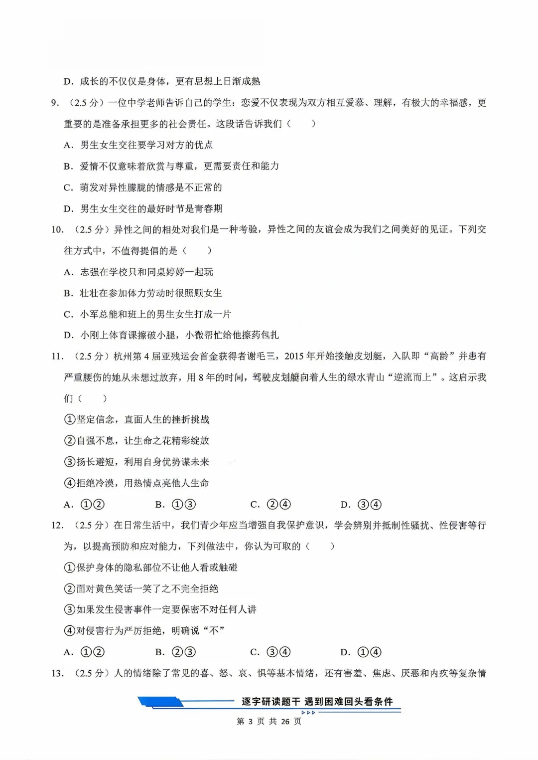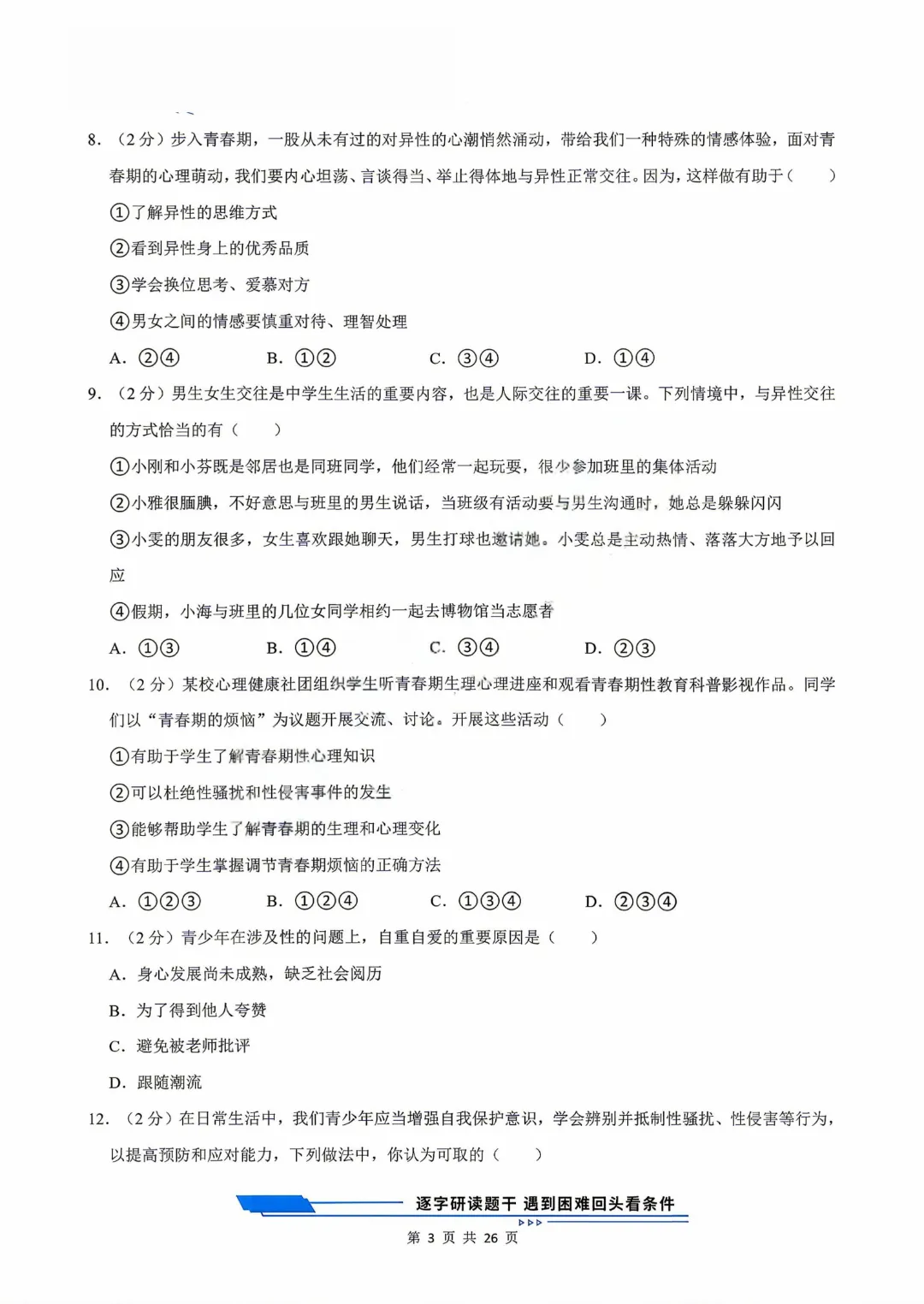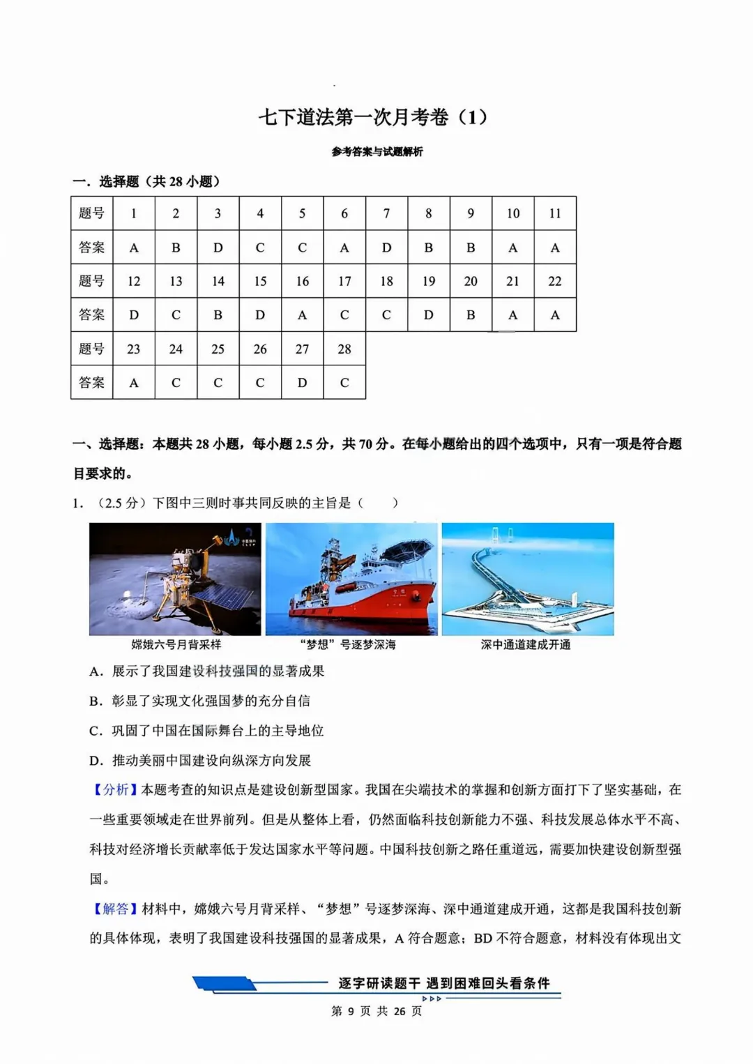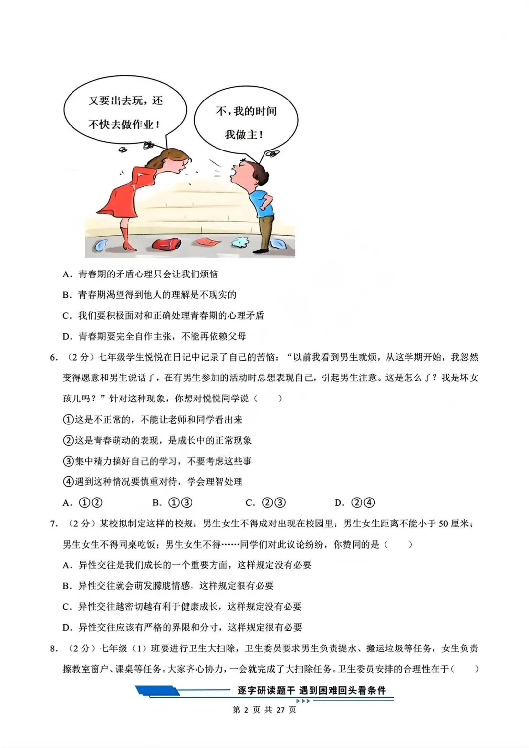 【七下道法】26年春七年级下册统编版道法《第一次月考测试卷3套》,可打印 · 点击蓝字,关注我们,加油新学期! 今天给大家分享的是:2025-2026学年七年级下册道法《第一次月考测试卷3套》含答案和解析,共79页,电子版可打印,可下载。这套七下道法第一次月考测试卷,帮助孩子检测这一阶段孩子知识点掌握情况,查漏补缺。需要的家长给孩子打印出来吧。 「领取完整电子版文档,请拉到文末 」 免费领取完整电子版: ①:点一点右下角的“👍”和“❤️” ②:在公众号对话框中回复:七年级 免责声明:本公众号所有资源分享仅供学习交流使用,公益分享,内容及图片均来自网络,如涉及侵权,请联系管理员删除。