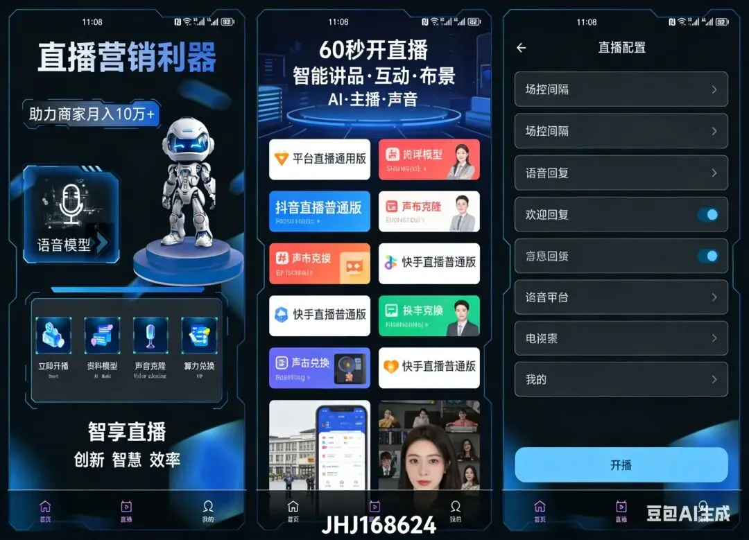 • 智能互动:毫秒级弹幕回复、上下文理解、多方言/情绪语调,提升互动转化。