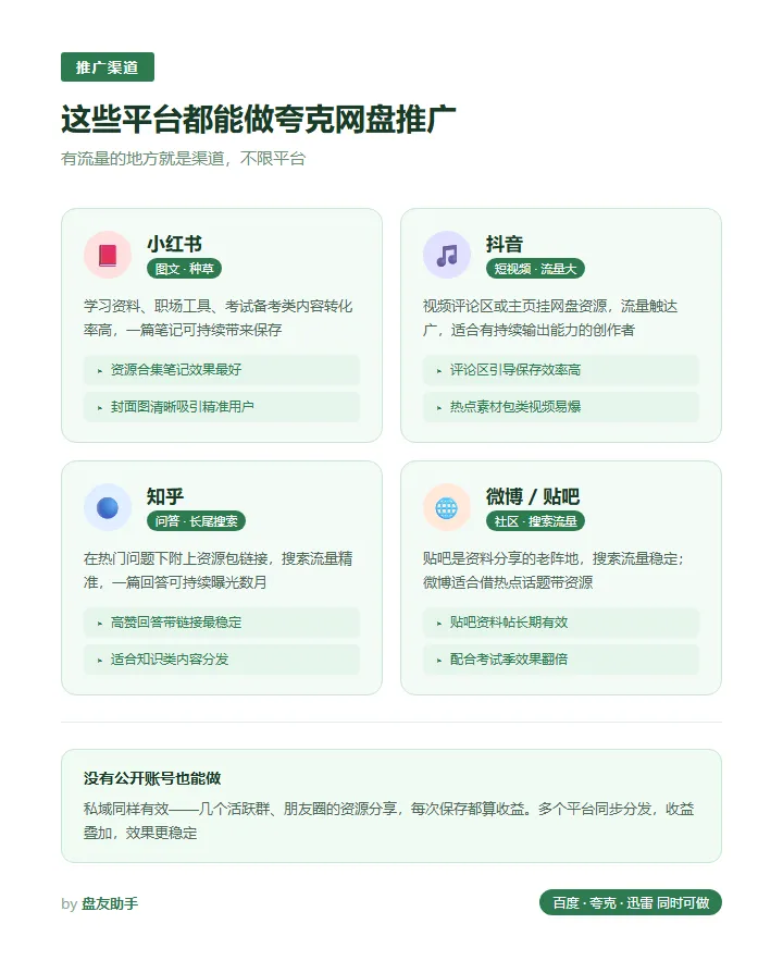 如果你平时分享的资源是:学习资料、考研备考包、职场工具类文档——用夸克网盘推广来承载,转化率会比较高