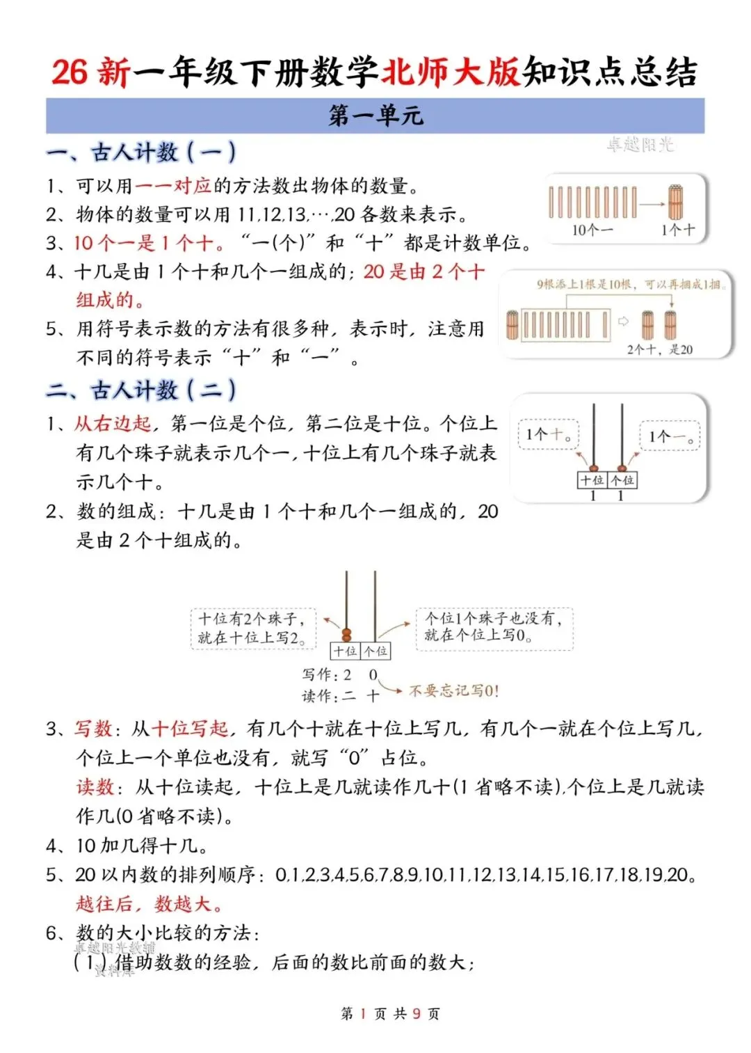 26新一年级下册数学北师大版知识点总结(电子版可打印)