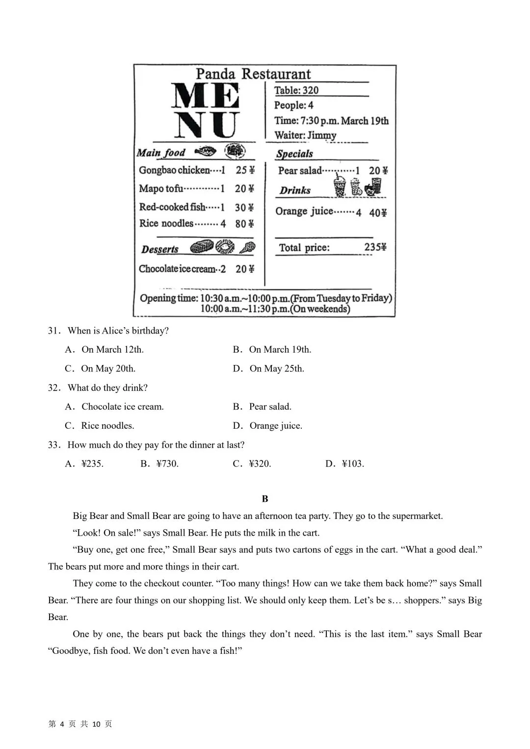 26年春七年级初一下学期英语下学期仁爱版英语第一次月考 测试卷【附答案解析】丨高清可打印(330)