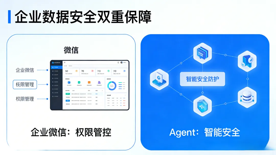 关联4:企业微信提供“权限管控”,Agent提供“智能安全”,双重保障企业数据安全