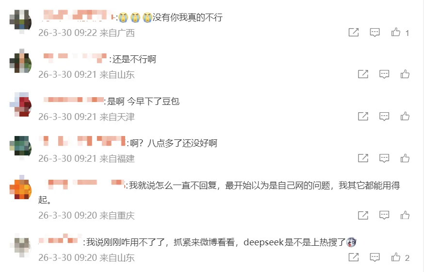 3月30日,“DeepSeek崩了”登上热搜。DeepSeek官方服务状态网站显示,DeepSeek网页、APP服务出现重大中断。
