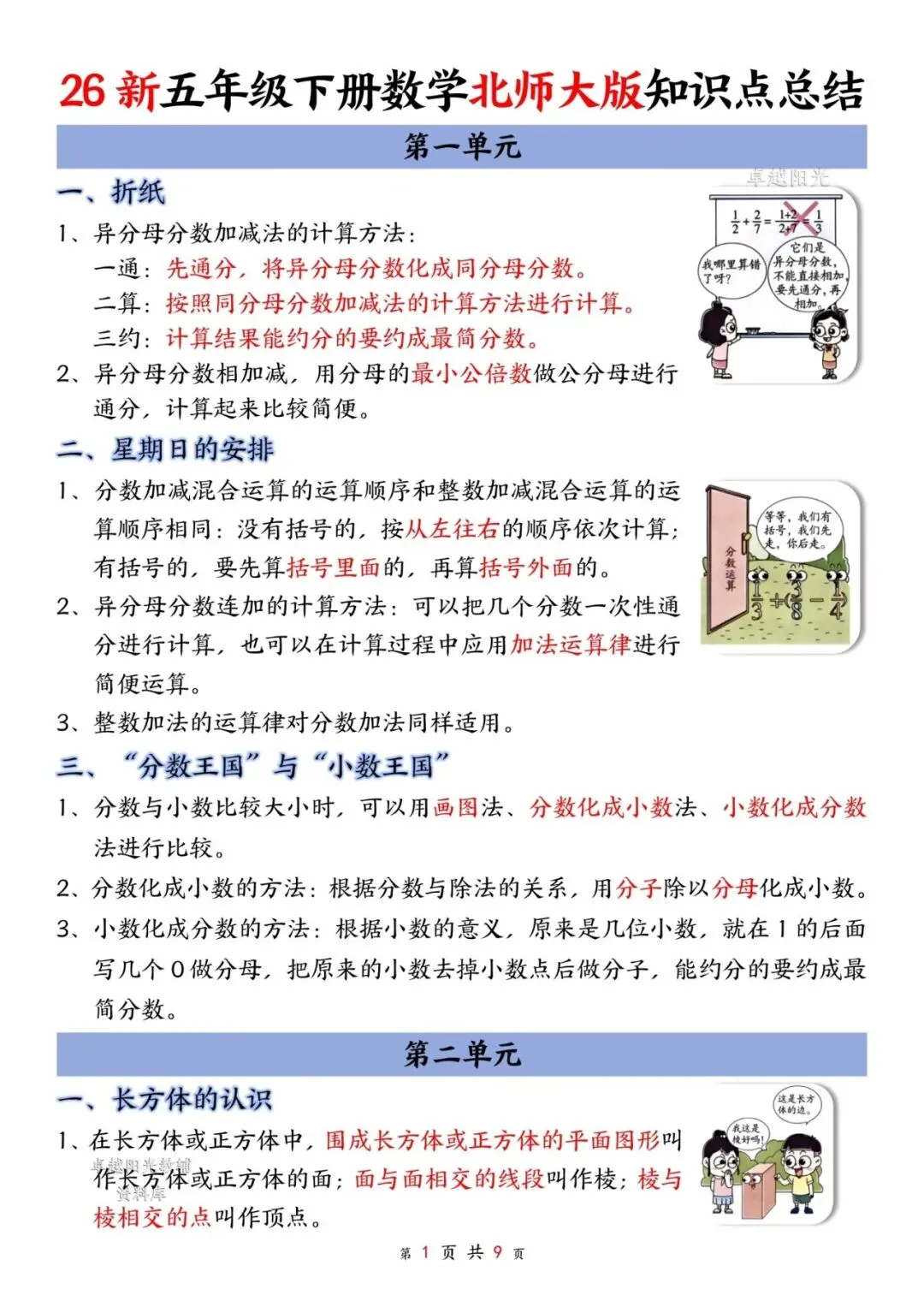 26新五年级下册数学北师大版知识点总结(电子版可打印)