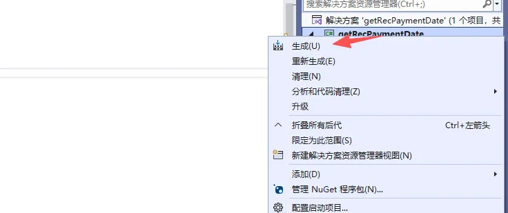 1、在VS 2022社区版(这个版本免费)右边解决方案管理器,右击项目名称,点击生成.dll组件文件。如图: