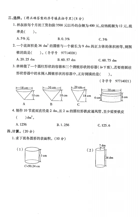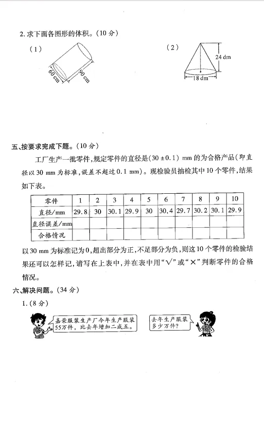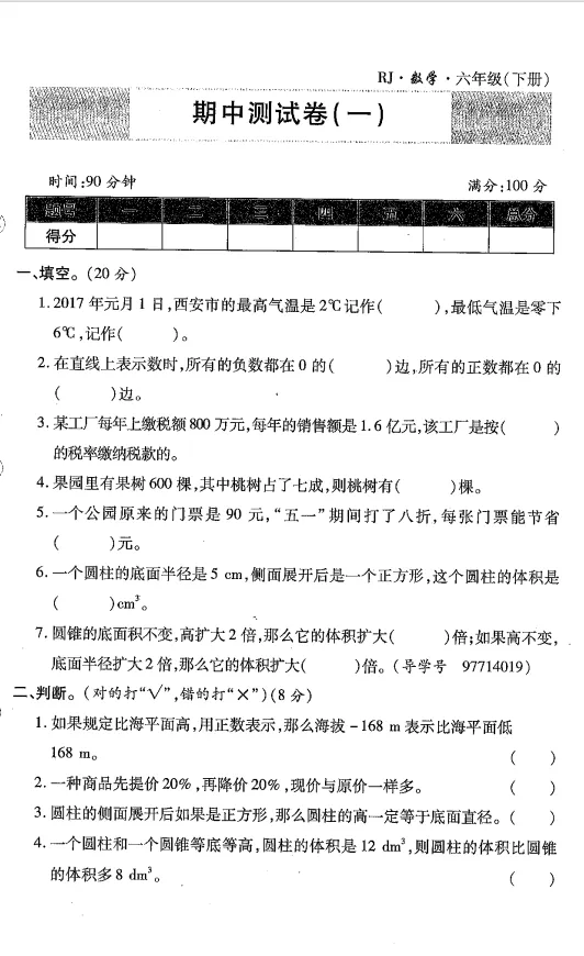 六年级下学期数学半期考试题|附答案(可打印) – END – 特别声明: 本公众号分享的视频、音频,图片部分来源于网络。若喜欢此资源,建议购买正版。谢谢!如涉及版权等问题,请及时与我们联系,我们立即删除。 给孩子一个机会,会还您一个惊喜 您的“分享”,会让更多孩子受益!