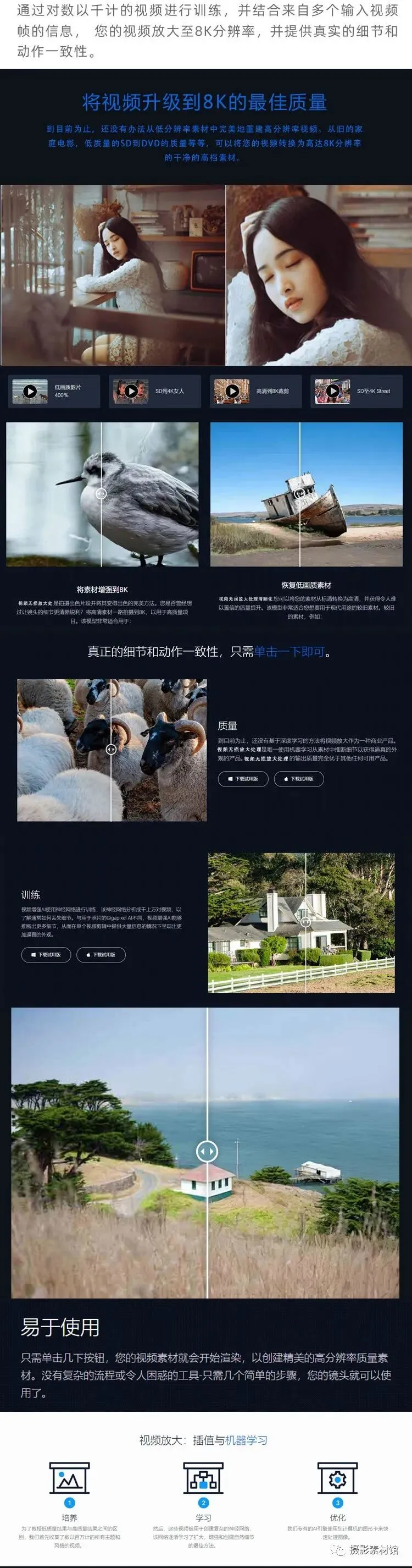 一款基于人工智能技术的视频无损放大增强修复软件。它通过深度学习技术,能够智能分析视频内容,将低分辨率、老旧档案视频修复并提升至4K甚至8K画质。