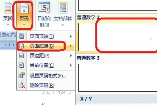 6、然后点击“页码”,选择“页面底端”,然后选择一种页码格式输入。完成。