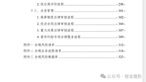 某集团公司合规管理手册PDF 获取资料轻按以下步骤操作 扫描下方二维码关注公众号财税猎豹。 扫描下方二维码加微信 说明:本资料由互联网中的公开信息整理而成,仅供需要的用户领取作私下学习、交流。相关费用并非资源的对价,而是收集整理劳动的对价。公众号小部分资源无法联系到原作者,如有侵权可添加微信,我将及时删除。