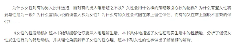 女人的性爱动机PDF 《女人的性爱动机》。作者访谈了1000多名女性,写了她们的237个性动机。 适合女的看,也适合男的看。 想看的免费分享一下: 在公众号回复“动机”免费获取这本书。 end 欢迎加微信: