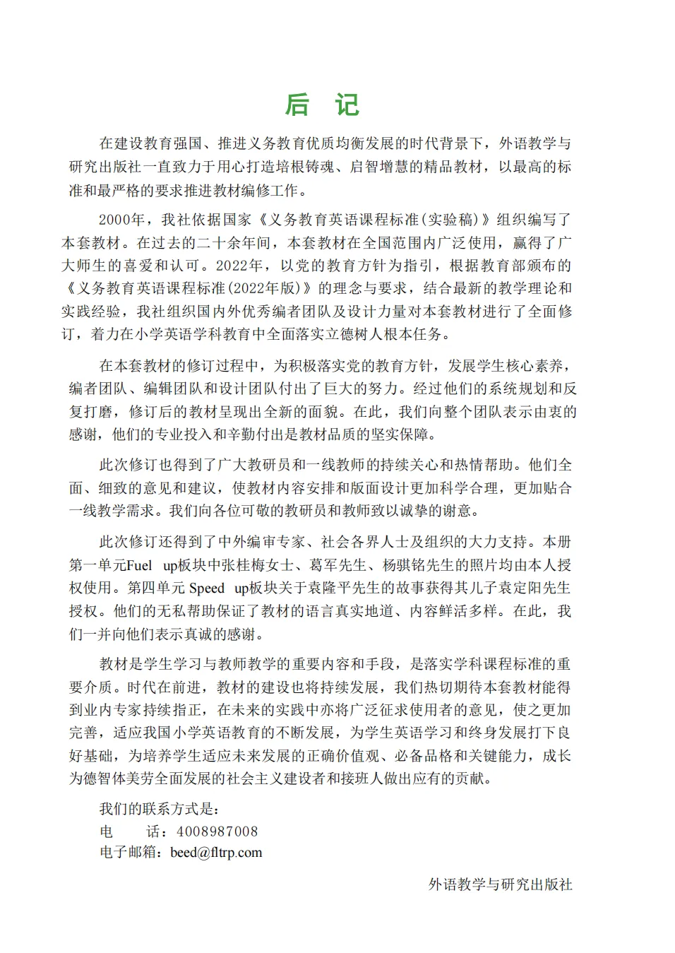 26春新外研四下英语课堂笔记+电子课本(彩色清晰完整版) 关注公众号点击底部菜单 免费领取新教材课本点读工具 点击下方卡片一键关注 👇👇👇 外研版英语四年级下册课堂笔记U6 关注领取英语同步教材点读 步骤1:点击关注下方公众号 步骤2:消息框内点击关键词“外研点读”获取免费英语点读工具 2026新教材外研版小学英语四年级下册电子课本+音频【完整高清版】+课堂笔记 声明:本公众号部分转载的文章、图文、视频来自网络,其版权和文责属原作者所有,若来源标注错误或侵犯到您的权益,烦请告知 ,我们将立即删除。