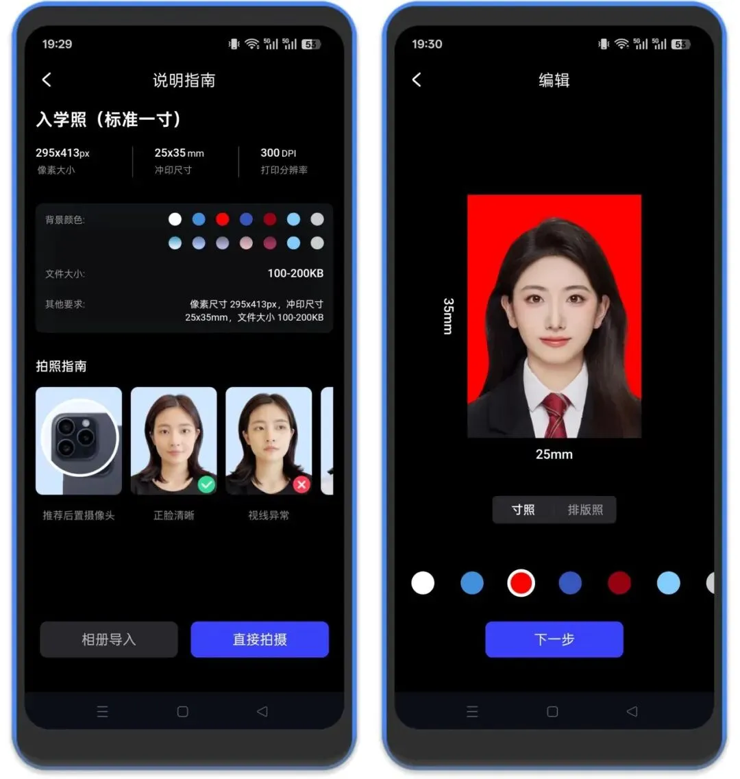 2、它支持从相册导入图片或者直接进行拍照,采用行业前沿的AI技术,自动识别并精确抠出人像,即使背景复杂也能轻松应对,效果堪比专业PS。可以修改多种底色