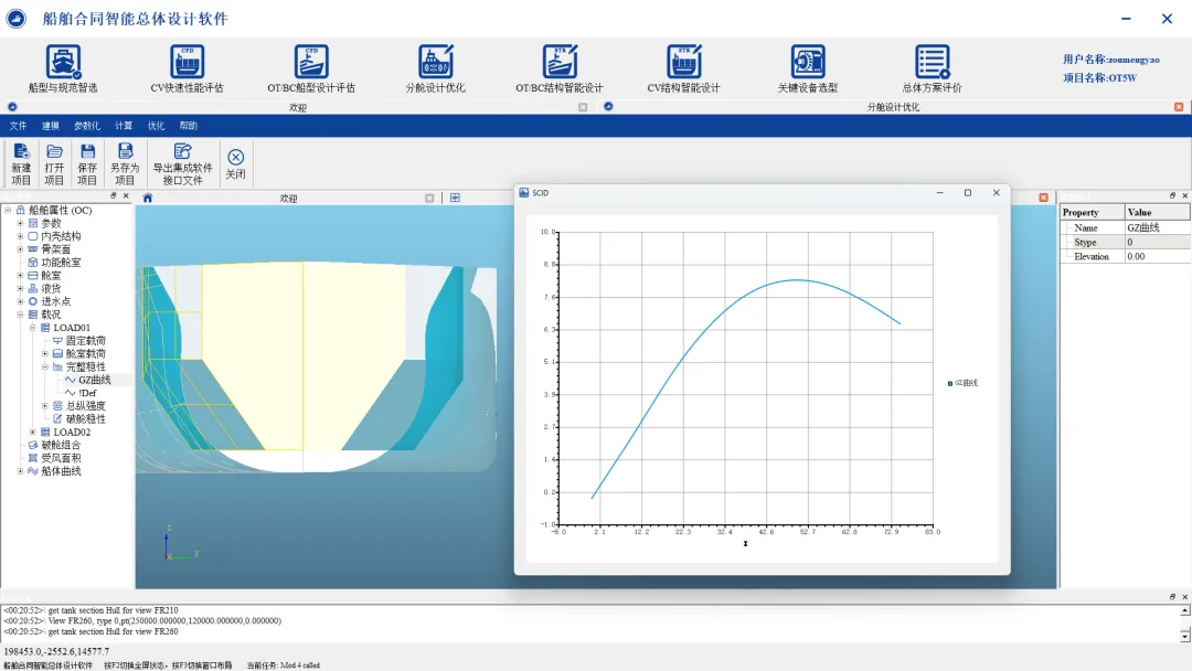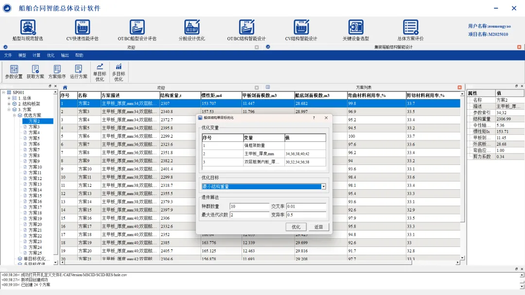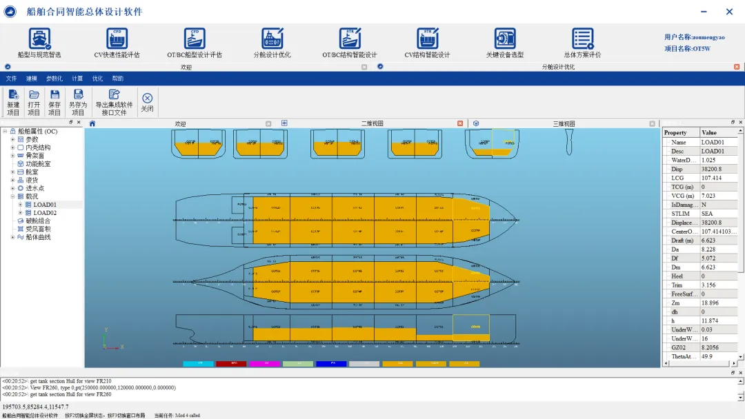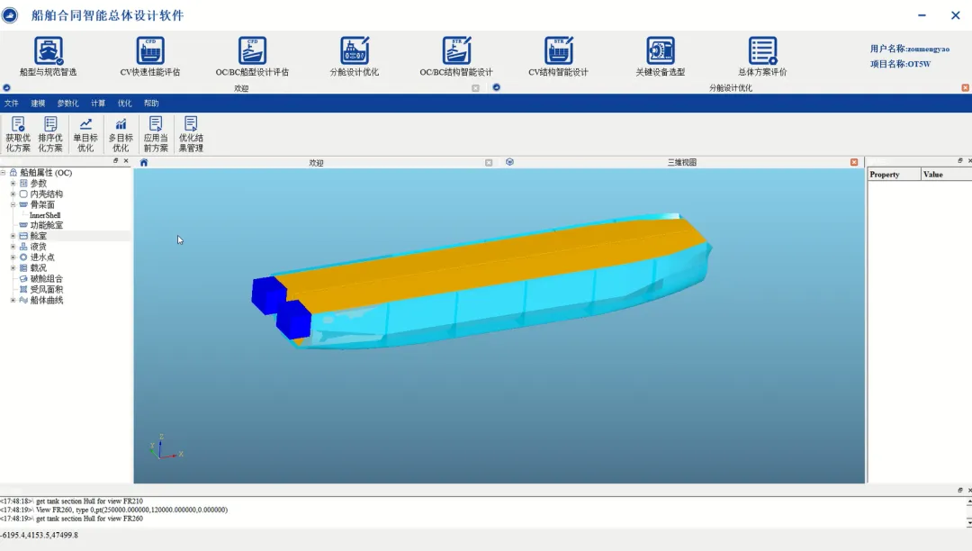 基于上游目标船线型和船型参数,通过参数化设计生成货舱段分舱方案,具备静水力、稳性、剪力弯矩等要求的多工况并行计算能力,满足货舱容积、总纵强度的多目标优化要求,提高分舱划分设计效率,可实现: