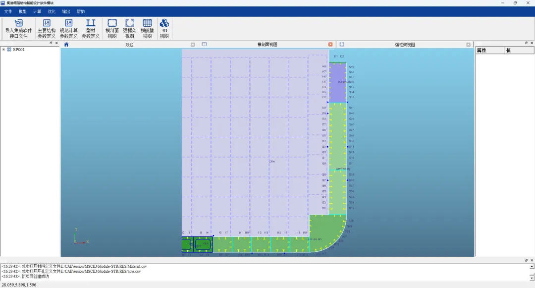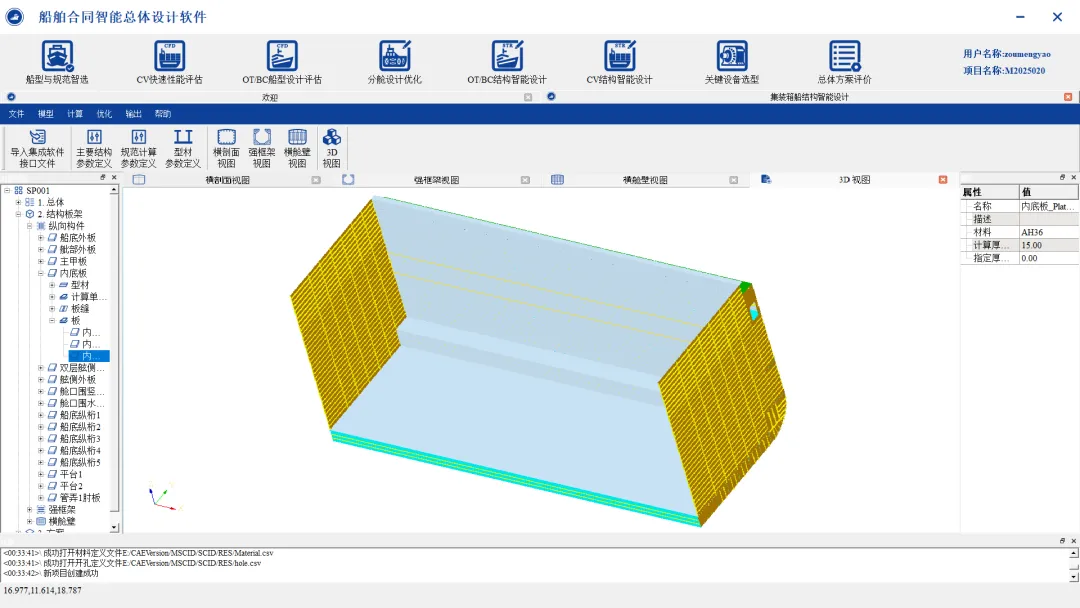 基于分舱参数、箱位设置、程序参数化模板生成结构布置方案,结合DNV规范进行计算校核,具备多方案生成、优选、优化等能力,满足合同设计的集装箱船中货舱段结构设计要求,可实现: