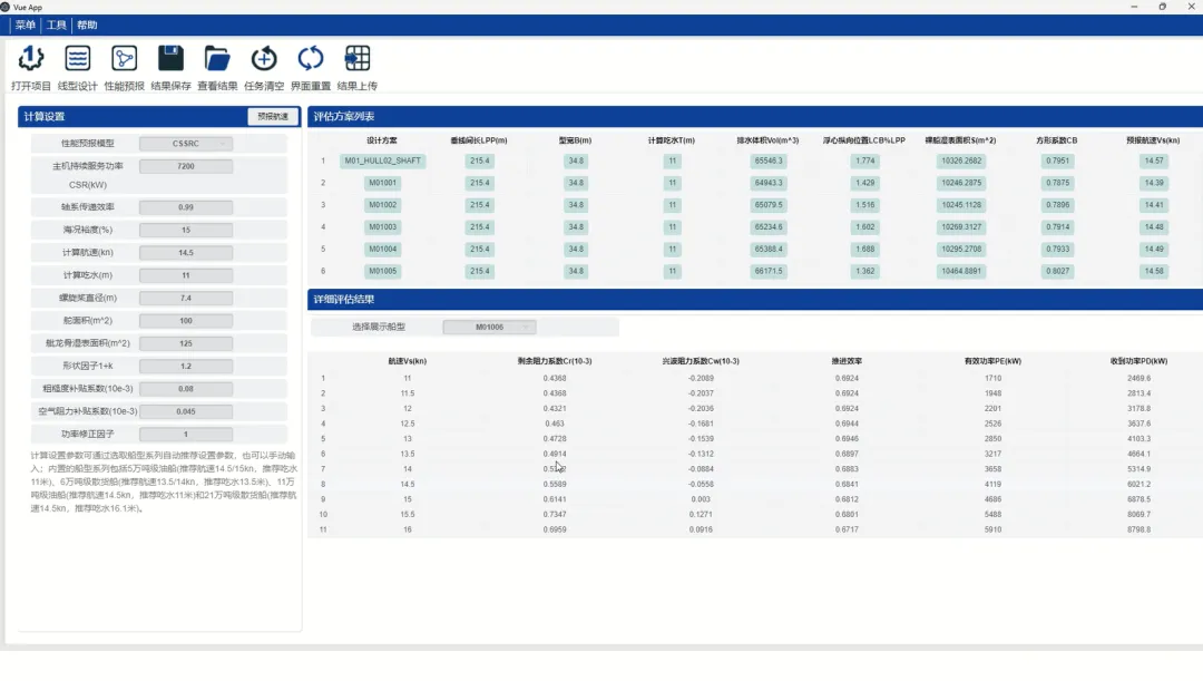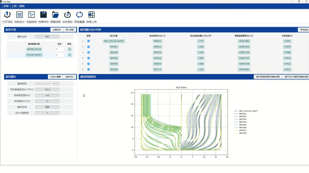 基于母型船数据、目标船参数等,通过肥大船型几何设计和快速性能评估功能,提供快速性能优秀的船型初步设计方案,服务于合同设计流程,可实现:
