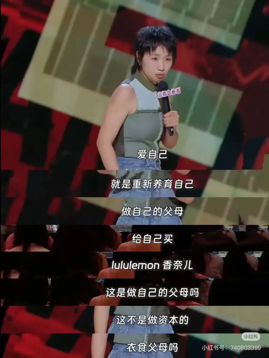 就像最近很火的脱口秀演员小鹿,也在一次演出中说过,爱自己也不要陷入消费主义陷阱。因为消费陷阱只是一时爽,并不能让你真正获得快乐。