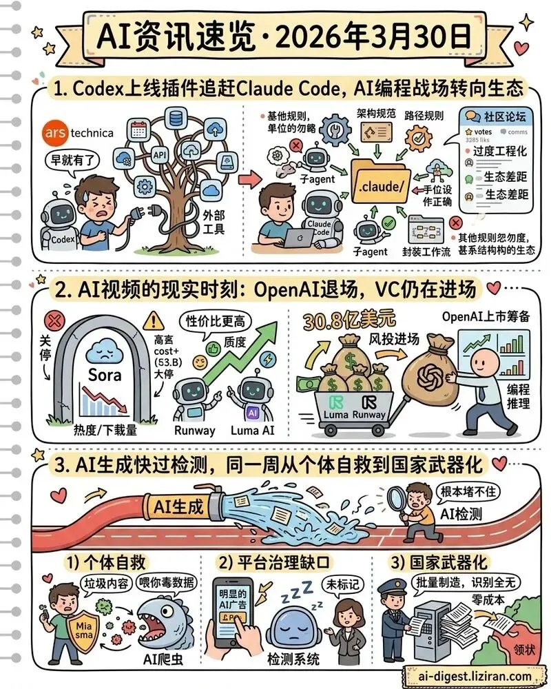 [*] Codex 上插件追 Claude Code,AI 视频 OpenAI 先撤了