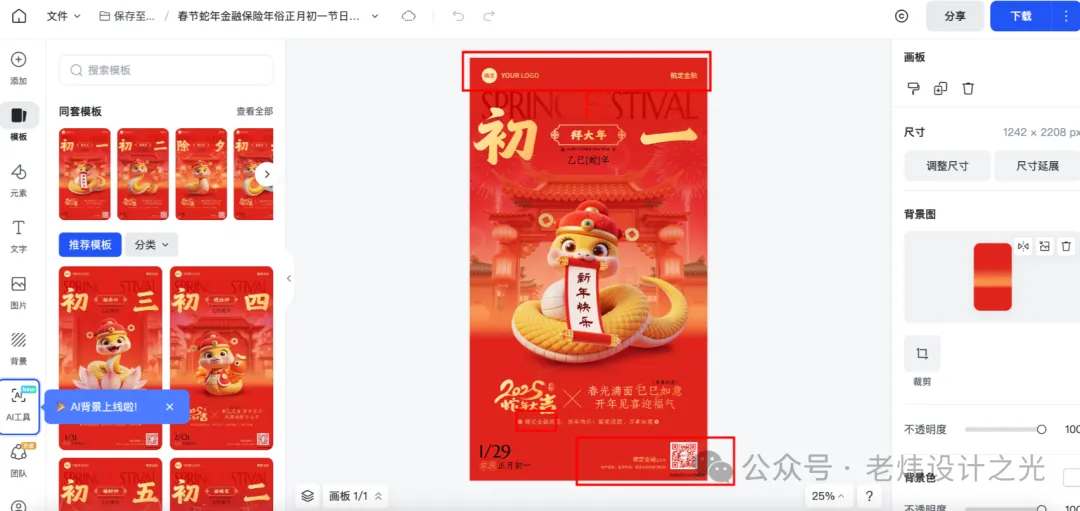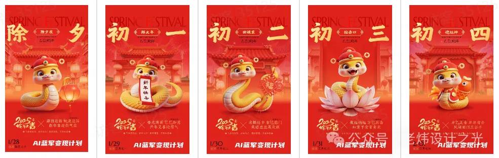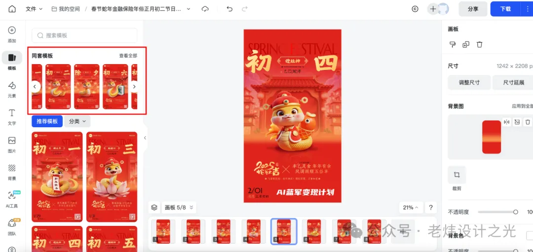 前两天我收到客户需求,想设计一套春节7天的套装海报,也就是每天有不同的祝福词,模板风格需保持一致