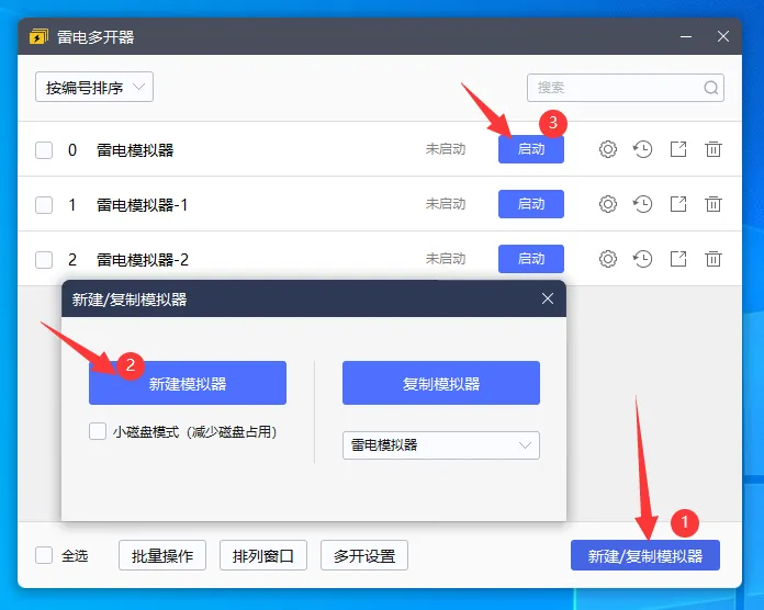 打开多开器,点击右下角的新建/复制模拟器按钮,自定义模拟器名字,创建成功后就可以开始启动使用了。