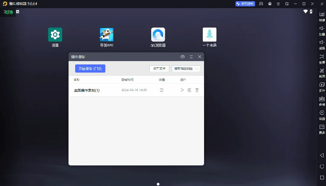 在模拟器右侧菜单栏的更多里,还拥有位置共享、同步器、操作录制、视频录制功能。