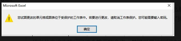 Excel表格:您试图更改的单元格或图表位于受保护的工作表中。若要进行更改,请取消工作表保护。您可能需要输入密码。