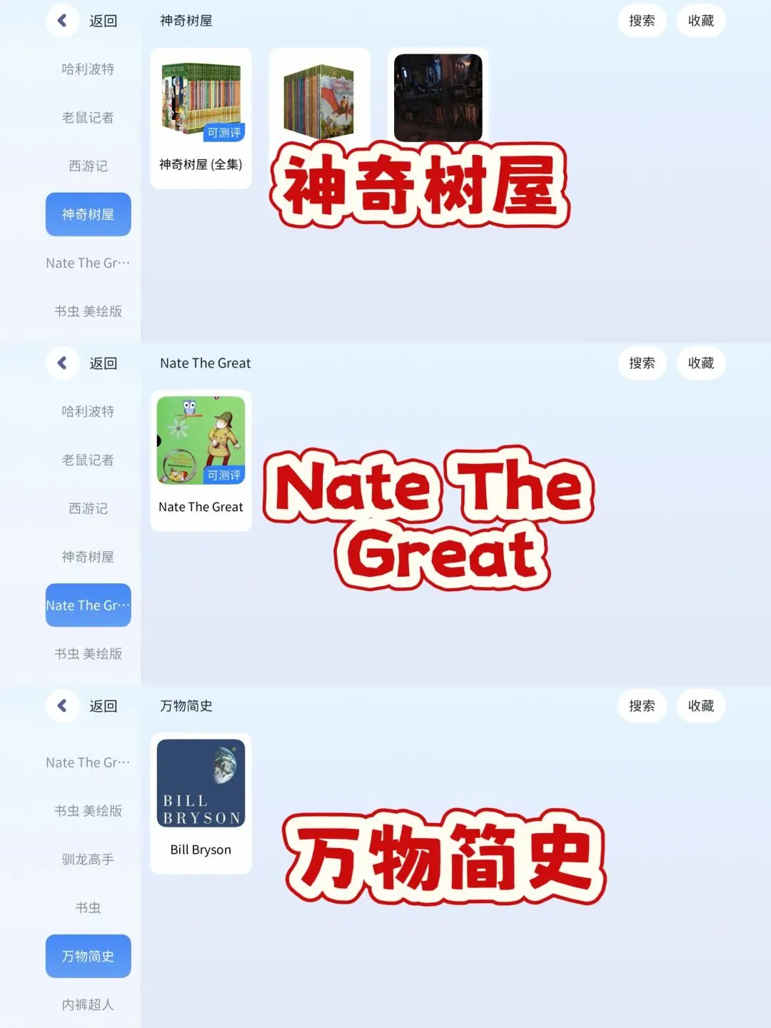 章节 :神奇树屋、老鼠记者、哈利波特、小王子、夏洛的网……