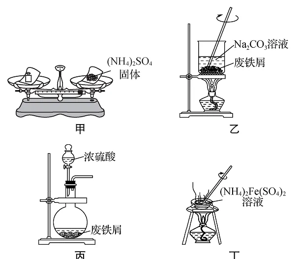 【解析】 用天平称量一定质量的固体时应“左物右码”,A错误;浓硫酸具有强氧化性,能使铁表面发生钝化,不能将废铁屑充分溶解,C错误;(NH4)2Fe(SO4)2·6H2O晶体受热易失去结晶水,不能用蒸干溶液的方法获得,D错误。