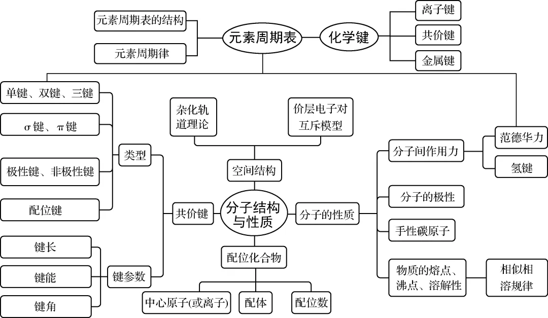 1. 认识化学键的含义,了解离子键和共价键的形成,了解常见离子化合物和共价化合物的形成过程,能识别典型的离子化合物和共价化合物。 2. 能从化学键变化的角度认识化学反应的实质。 3. 了解共价键的主要类型,能用键能、键长、键角等数据说明简单分子的某些性质。 4. 能根据分子结构特点和键的极性来判断分子的极性。 5. 能利用杂化轨道理论和价层电子对互斥模型判断简单分子或离子的空间结构。 6. 能说明分子间作用力(含氢键)对物质熔、沸点等性质的影响。 7. 掌握常见的化学用语。 |
