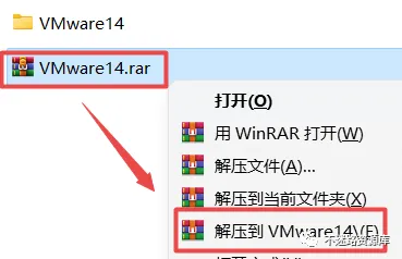 1.选中下载的压缩包,然后鼠标右键选择解压到“VMware 14”(没有解压选项点这里)