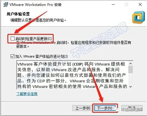6.取消勾选“启动时检查产品更新”,点击“下一步”