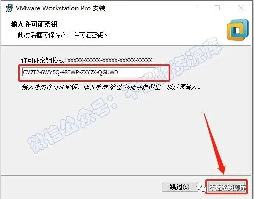 11.输入许可证:CV7T2-6WY5Q-48EWP-ZXY7X-QGUWD,点击“输入“