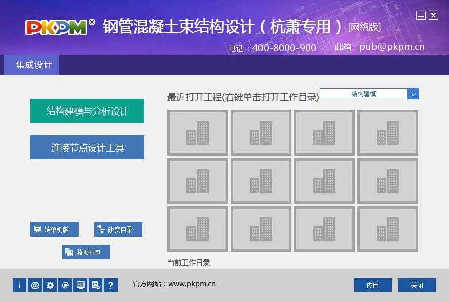 杭萧钢构联合中国建筑科学研究院北京构力科技有限公司以《钢管混凝土束结构技术标准》T/CECS 546-2018为主要依据,共同开发了“钢管混凝土束结构设计软件”,并取得了软件的著作权。本软件提供了钢管混凝土束结构的建模、设计、计算书的整套解决方案,同时还针对钢管混凝土束的特殊连接节点,提供了相应的工具箱。