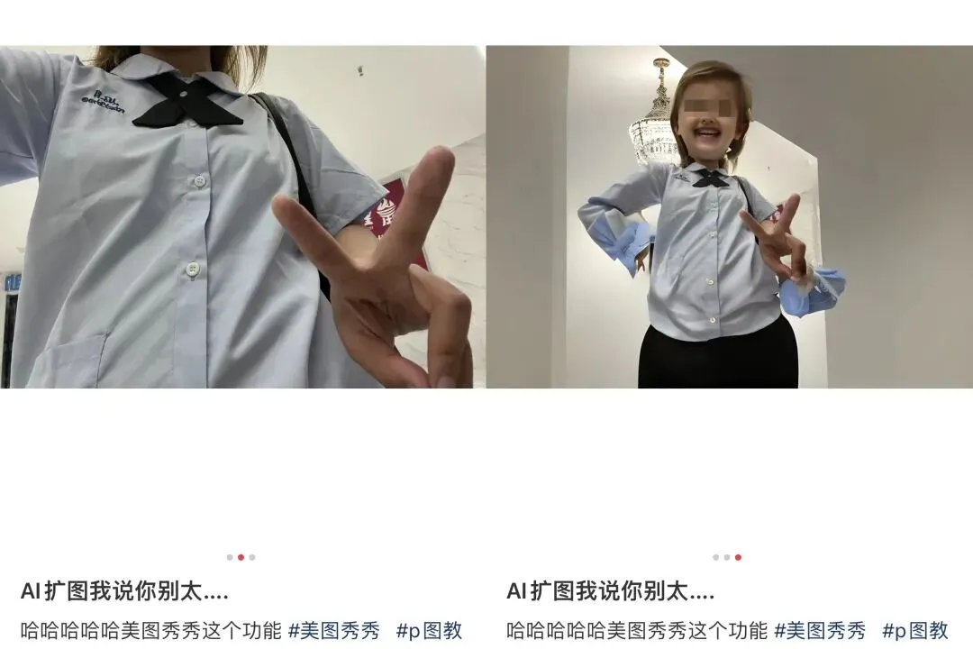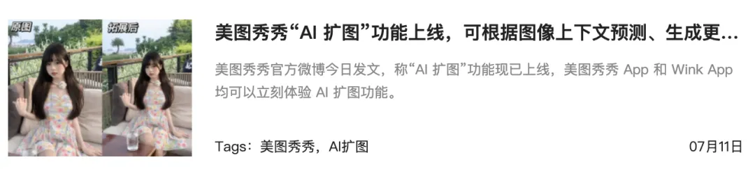 所以,当机哥在很偶然的一次机会,看到国民级P图软件「美图秀秀」,也更新了这个扩图功能时。