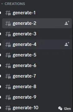 要生成视频,需要进入generate频道,目前有10个generate频道,大家随便选择一个进入即可。