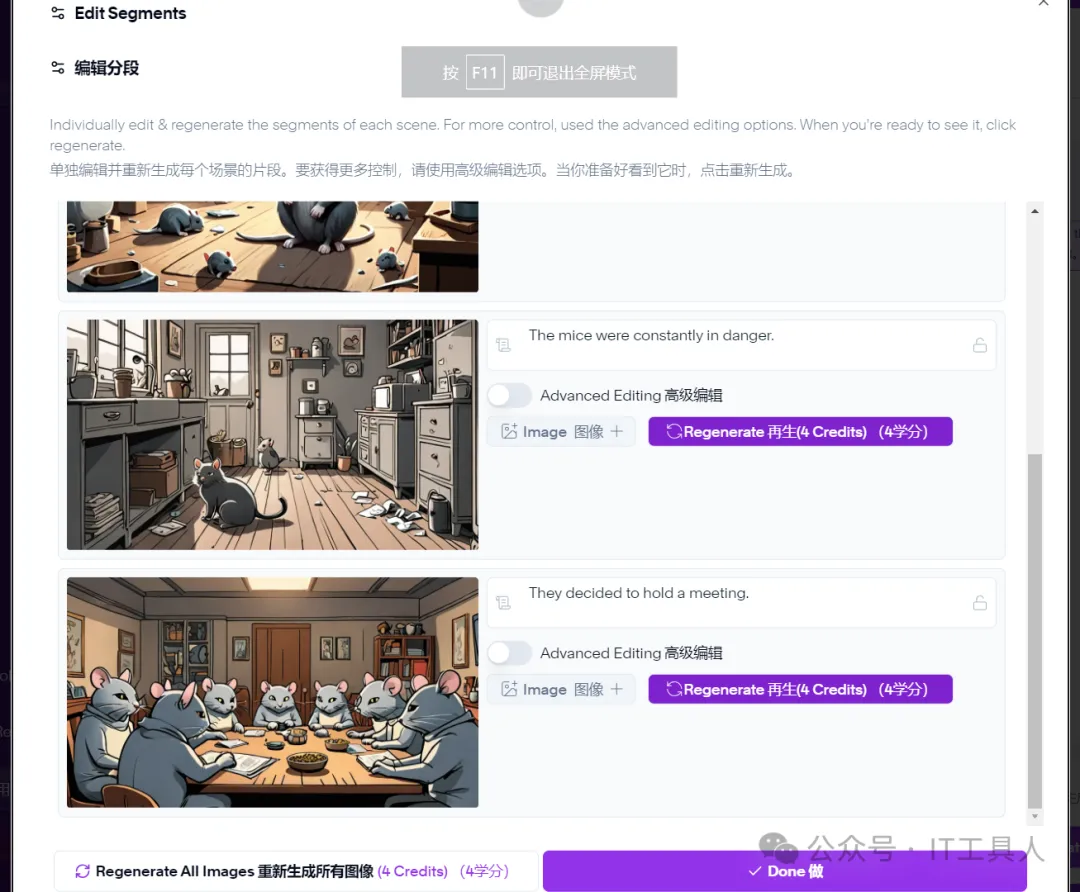 4、所有片段都生成满意之后,就可以生成镜头(Scenes)。这里的镜头如果不满意,也是可以重新生成,与上述生成图片的原理是相似。
