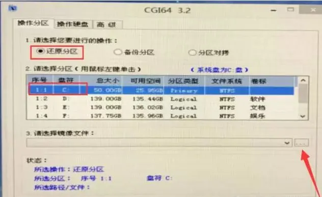 6、选择U盘里面下载好的系统镜像文件后,点击【执行】