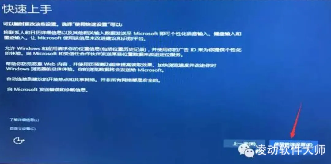 11、点击【使用快速设置】后,不要动电脑,直到下一步操作。