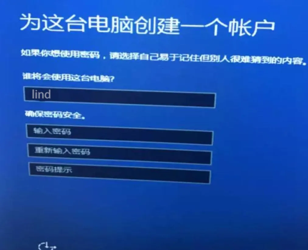 13、用户名建议使用英文名称(有些国外软件无法识别中文可能造成无法安装),密码可自行设置,若不需要设置密码,直接点击下一步。