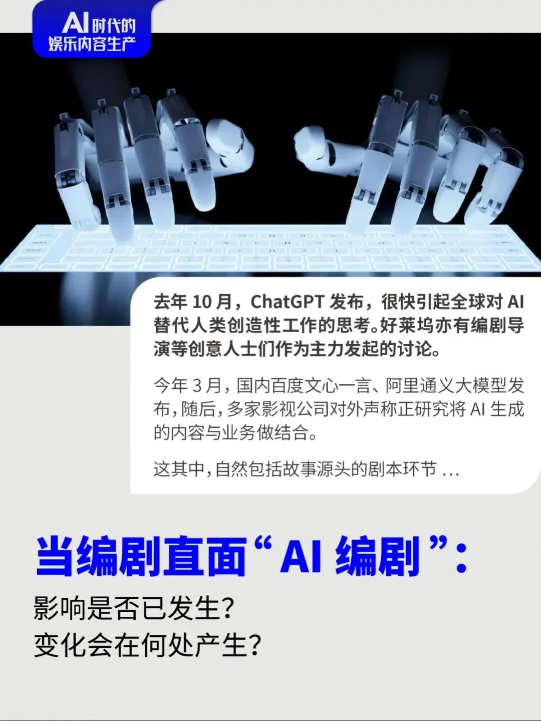 基于对于文娱科技方向的长期跟踪,东西文娱即将推出《AI时代的文娱内容生产》的特别内容,旨在面向 AI 时代的内容从业者,深度呈现AI在文娱行业引发的变革,并前瞻AI时代的内容生产趋势。